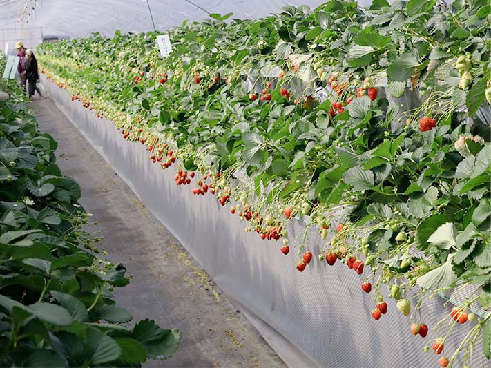 成東の苺狩りは、摘みやすい高設ハウスの方が多くなりましたが、