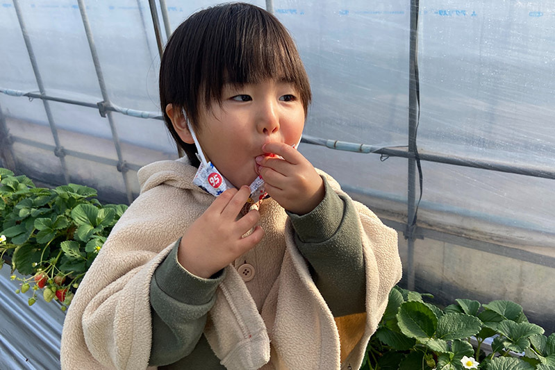 今のところ、お土産用苺をご用意するのが追いつかない状態なので、苺狩りの帰りにお土産が欲しい場合は、前もってご連絡いただけると大丈夫です。